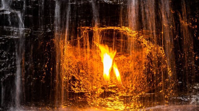 در پارک چست‌نات ریج نیویورک، آتشی به نام آبشار شعله ابدی (Eternal Flame Falls) می‌سوزد که در زیر آبشار و در یک خلأ سنگی قرار دارد و می‌تواند بدون خاموش شدن، سال‌ها شعله‌ور بماند.