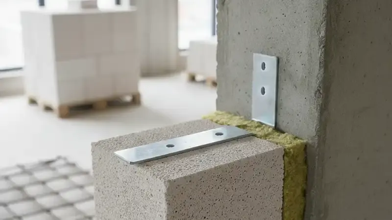 3. اتصال به بلوک هبلکس: بخش آزاد بست داخل ملات یا چسب بلوک هبلکس جای می‌گیرد و با میخ به بلوک متصل می‌شود.