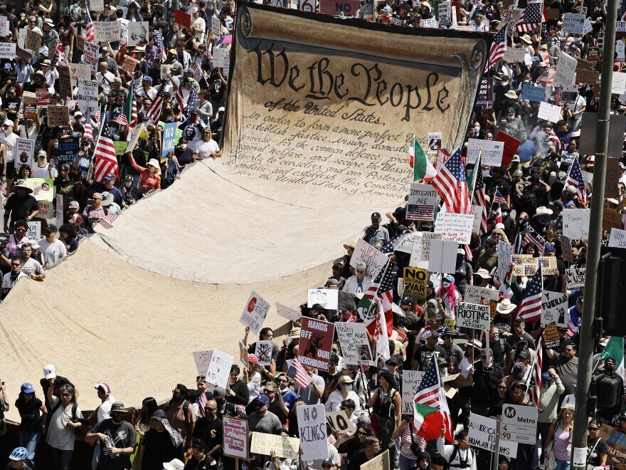 به گزارش همشهری آنلاین، آمریکا شاهد اعتراضات سراسری علیه رییس‌جمهور دونالد ترامپ است. اعتراضات «نه به پادشاه» که دلالت به یکی از اصول قانون اساسی آمریکا مبنی بر نفی حکومت پادشاهی دارد به‌دلیل رفتارهای اقتدارجویانه، خودپسندانه و نادیده‌انگاری ملاحظات قانونی دونالد ترامپ است. این اعتراضات موج دوم «نه به پادشاه» است. نوبت اول آن در 14 ژوئن 2025 برگزار شد و تخمین زده می‌شود حدود 4 الی 6 میلیون آمریکایی در 2100 شهر گرد هم آمده بودند تا نه بزرگ به ترامپ بگویند. اعتراضات امروز بنا به آخرین گزارش سی‌ان‌ان نزدیک به 7 میلیون نفر را در 2700 نقطه مختلف آمریکا به خیابان‌ها کشانده است.