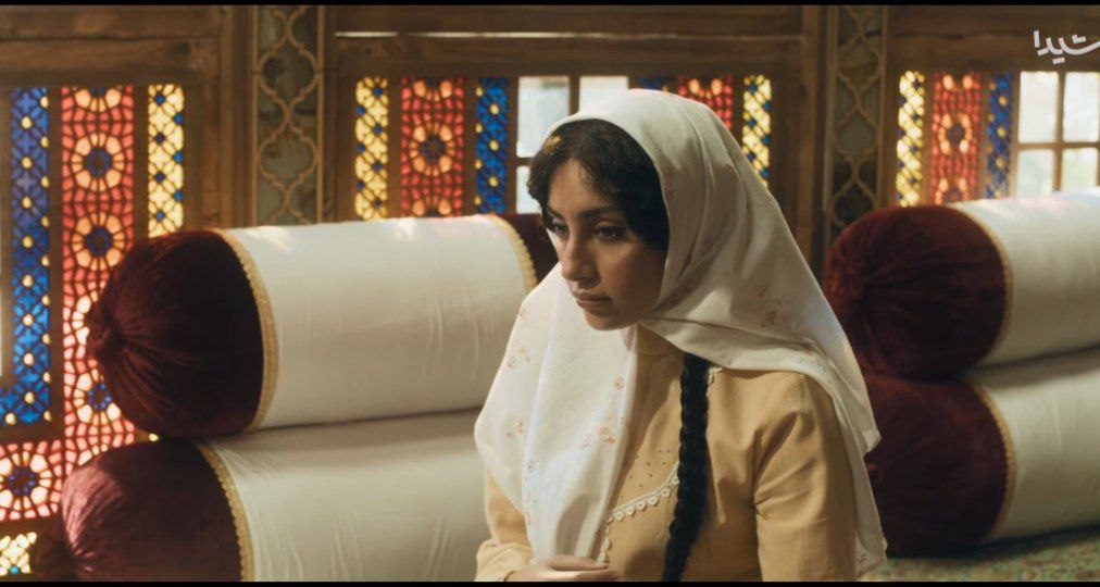 پنجرههایی با شیشههای رنگی و طرحهای مشبک که بهوضوح یادآور ارسیهای ایرانی هستند. این ارسیها با شیشههای آبی، قرمز و زرد نهتنها زیبایی خیرهکنندهای دارند بلکه در گذشته برای کنترل نور، حفظ حریم خصوصی و تهویه طبیعی طراحی میشدند. عبور نور از میان این شیشهها و افتادن آن بر فضای داخلی، جلوهای شاعرانه به صحنه میدهد.