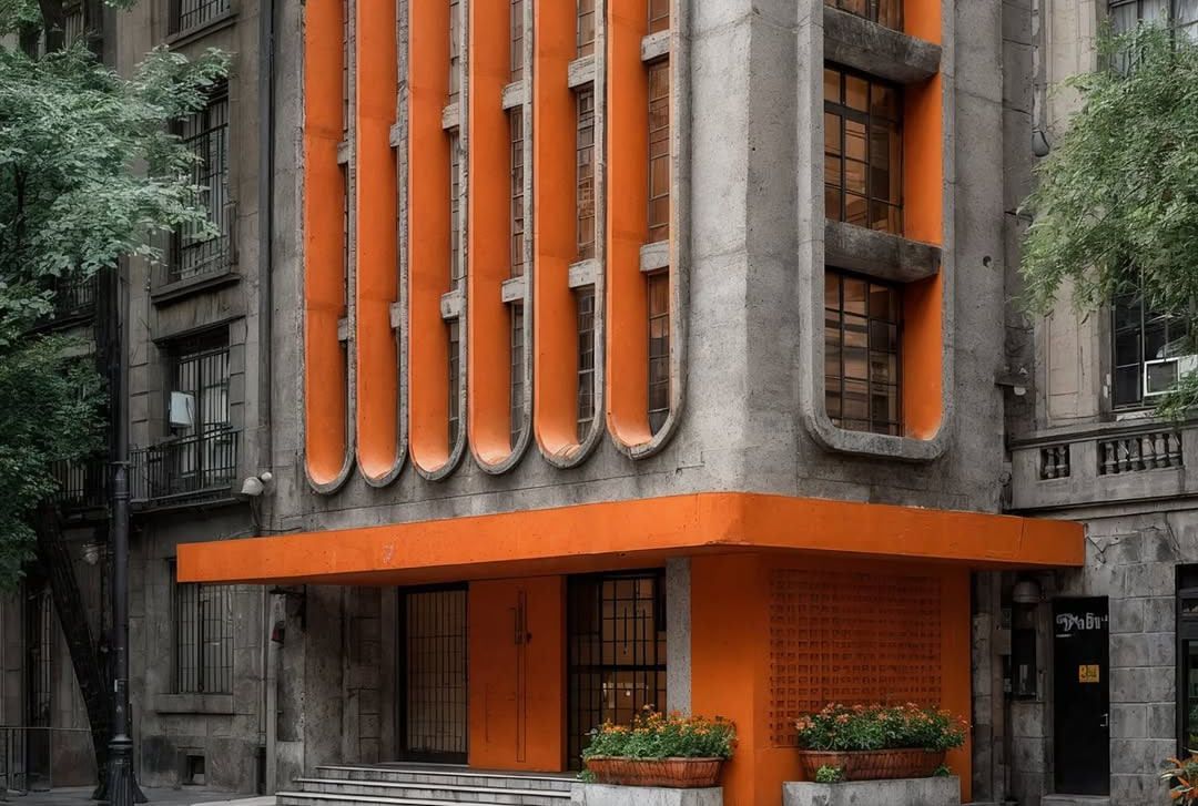 در دل این صلابت خاکستری، رنگ نارنجی پرانرژی جان تازهای به فضا بخشیده است؛ رنگی که به بافت خام بتن هویت میدهد، مرز میان سازه و فضا را برجسته میکند و خوانایی فرم را افزایش میدهد.