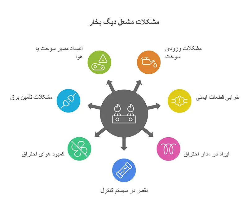 علت روشن نشدن مشعل دیگ بخار: بررسی ۷ مشکل رایج در بخشهای مختلف