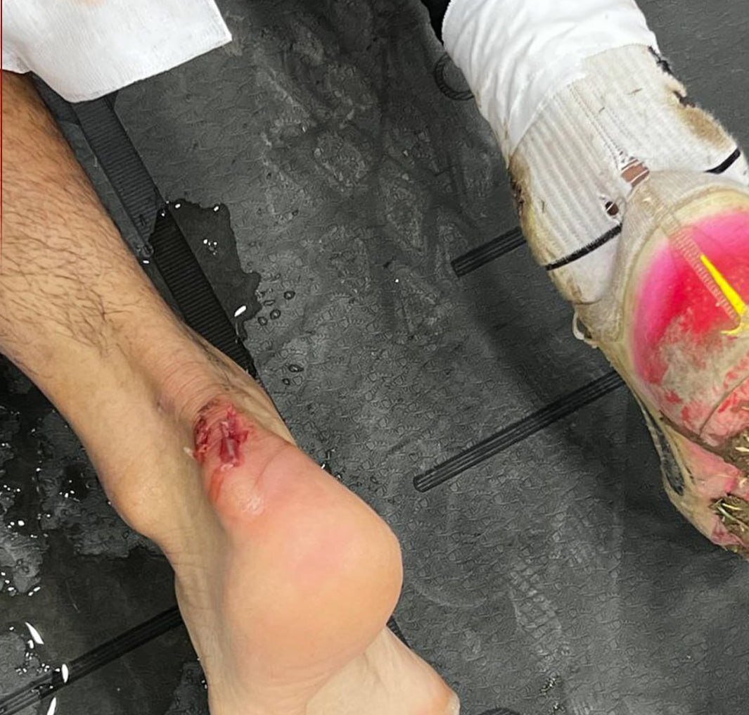 باشگاه خیبر با انتشار این عکس نوشت: خطای شدید نازون پای مسعود محبی را به این شکل در آورد اما باز هم داور صحنه را ندید!